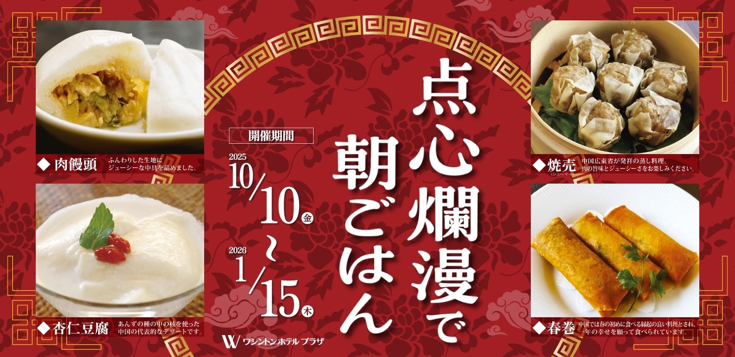 ワシントンホテルプラザでは、10月10日(金)より全国16のホテルで朝食催事「点心爛漫で朝ごはん」を開催中です。