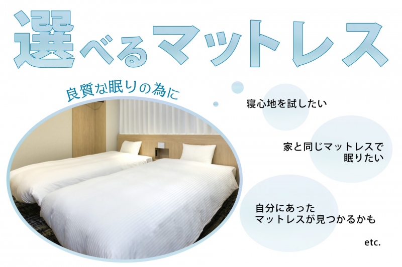 ご予約の際、お好きなマットレスのお部屋をお選びいただくことができます。