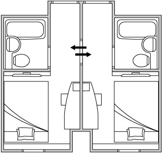 ファミリーやグループで使い勝手の良い、隣接したシングルルームとシングルルームを、お部屋内にある内ドアでつないだコネクティングルームです。