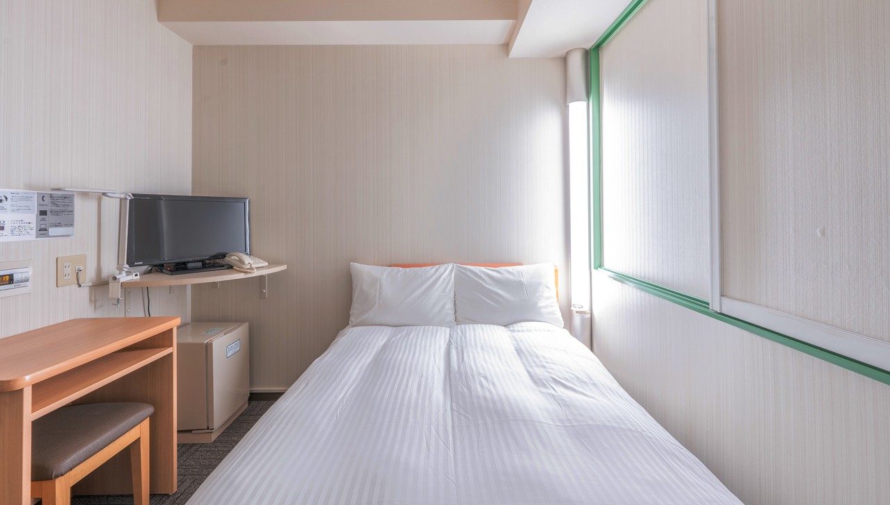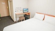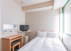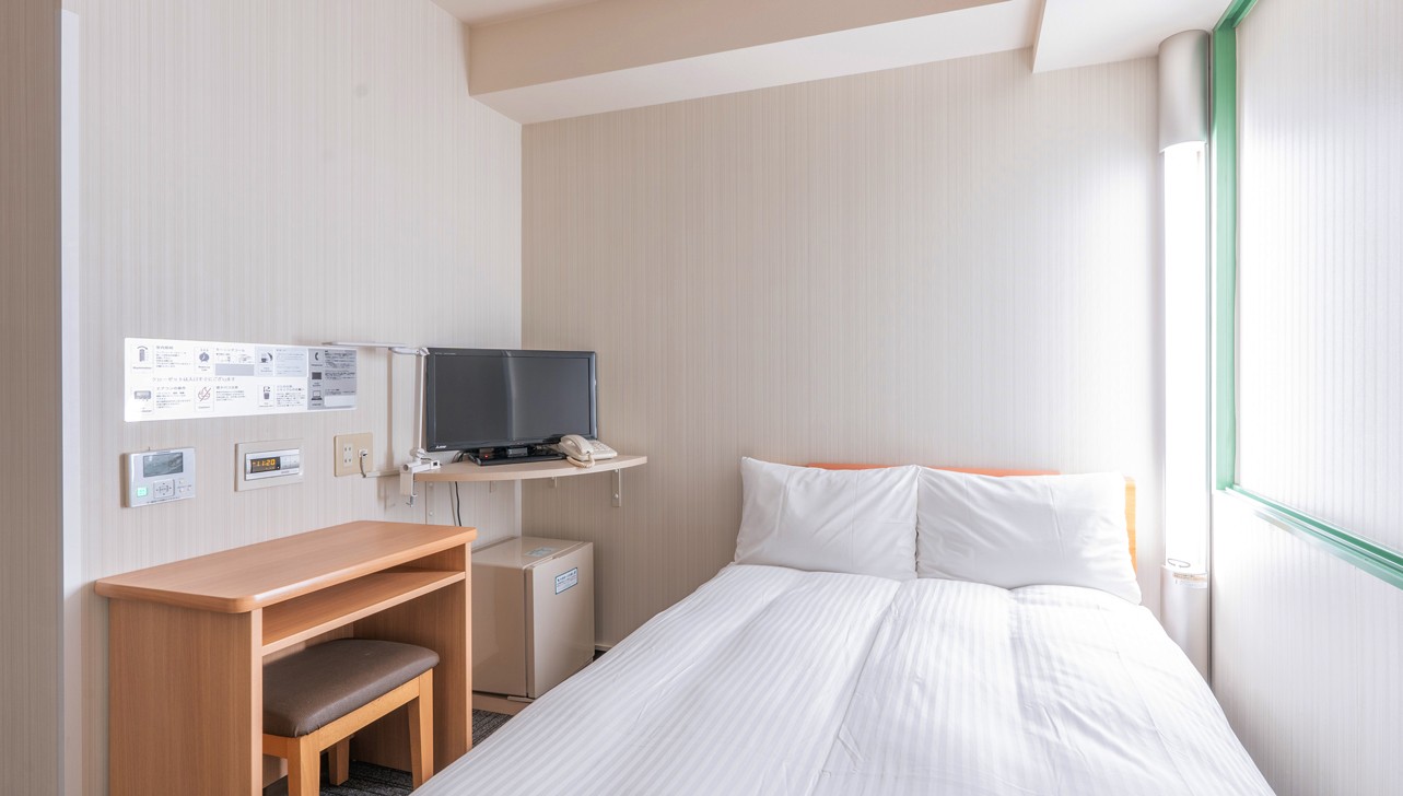 シングルタイプのベットより大きい幅140cmのコンパクトダブル、レジャーなどの際にお気軽にご利用いただけます。客室内でのWi-Fiはもちろん完備の為 無料インターネット接続がご利用いただけます。
