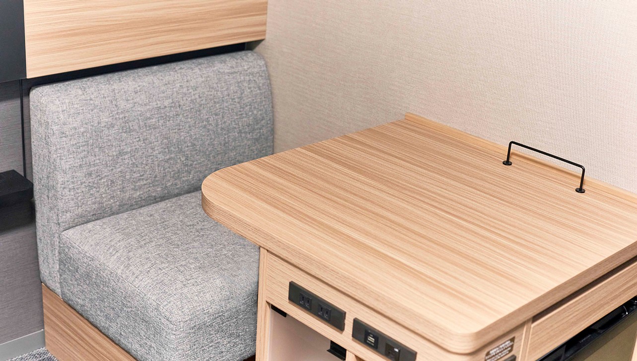 デスクワークや食事のしやすいワイドデスクを採用しております