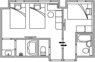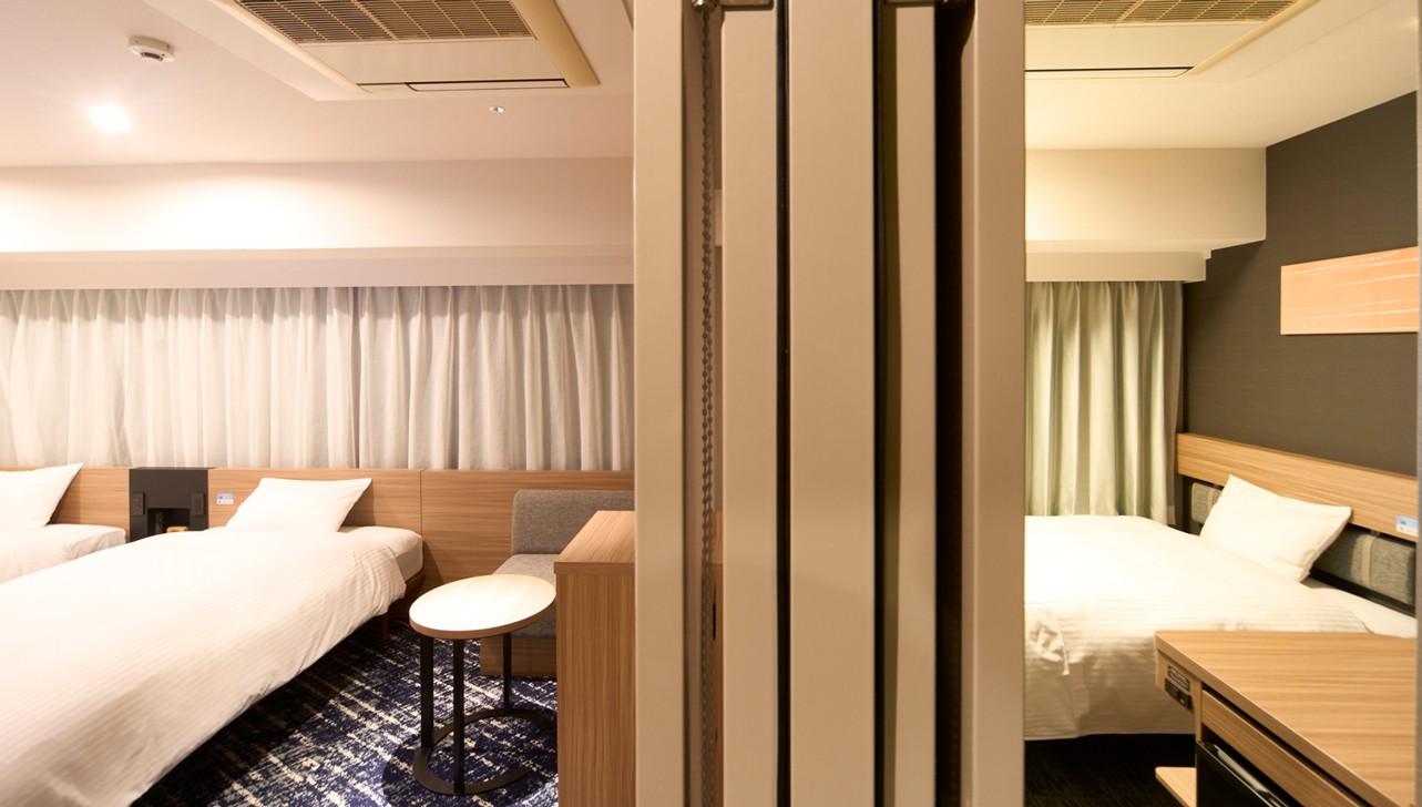 ファミリーやグループで使い勝手の良い、隣接したツインルームとシングルルームを、お部屋内にある内ドアでつないだコネクティングルームです。