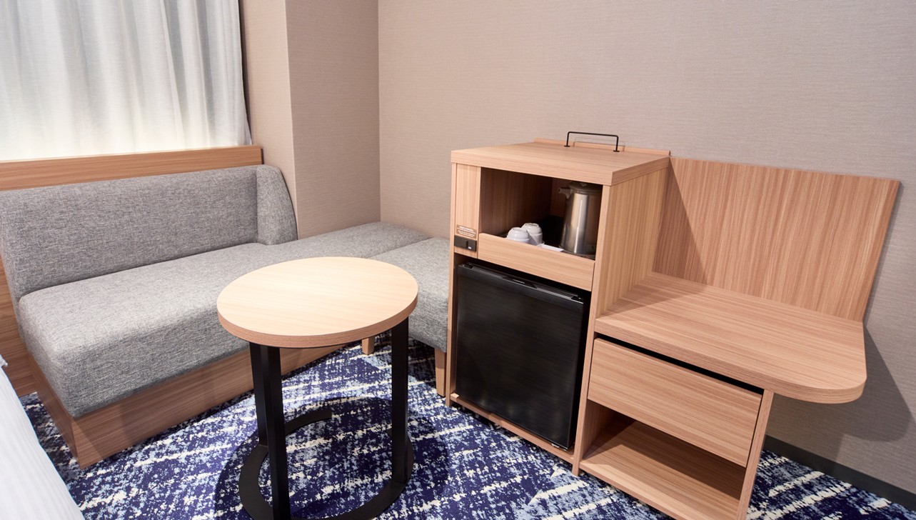 テレビが見やすい配置のソファ、バスルームとトイレがセパレートの設計で、居住性を追求した客室です。