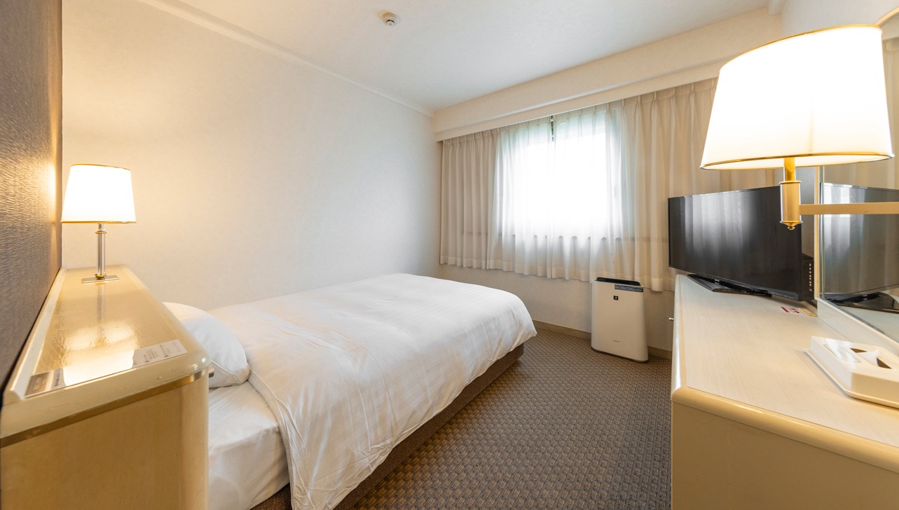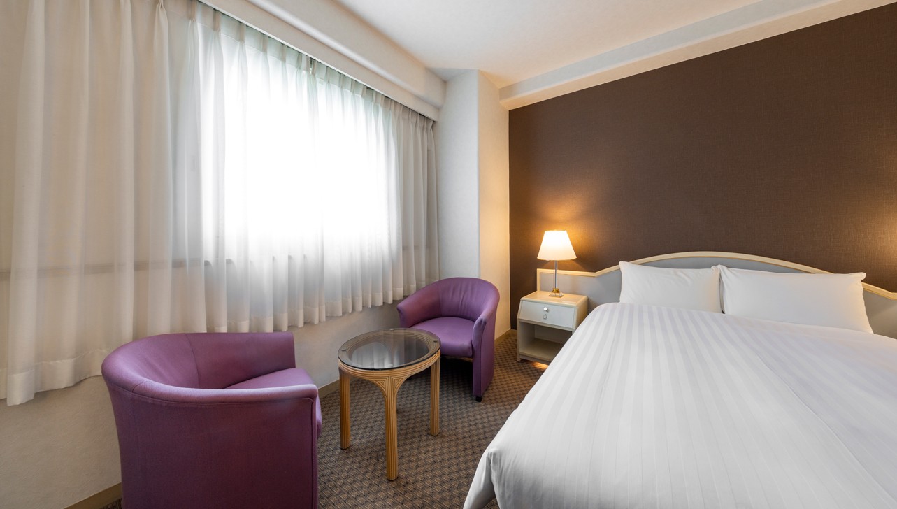 ゆとりのあるベッドのダブルルームは、お一人でもお二人でもゆっくりと快適にご利用いただけるサイズです。