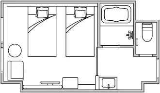 バスルーム・洗面・トイレが独立したツインルームは快適なお部屋でお二人でゆったりとおくつろぎ頂けます。