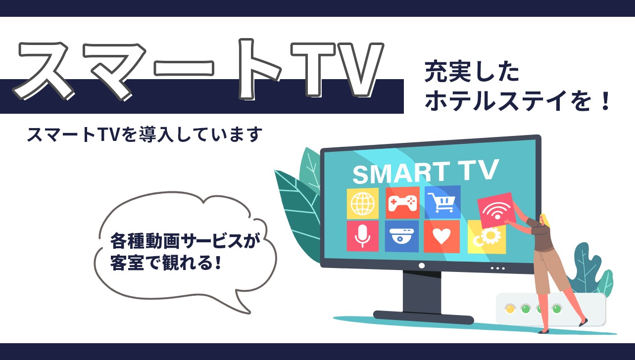 壁掛け式の40型スマートテレビを導入し、各種動画配信サービスも利用可能(※)です。HDMIケーブルを常設し、パソコンやゲーム機の接続も可能です。
